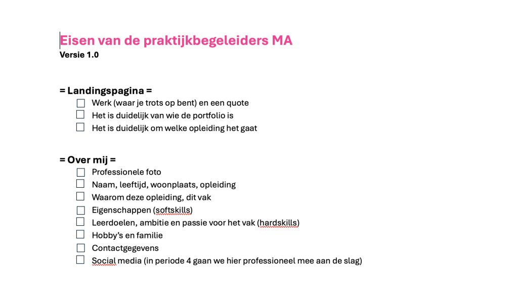 Eisen van de praktijkbegeleiders van MA.